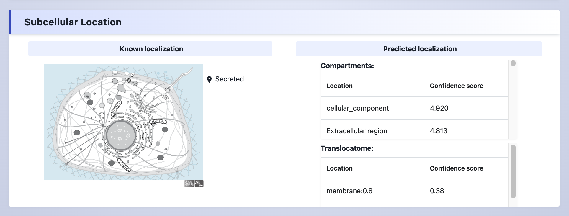 Known subcellular location- The known subcellular location data was collected from UniProt database.Predicted subcellular location- Compartments predicted subcellular locations for proteins. Translocatome predicted translocating proteins.